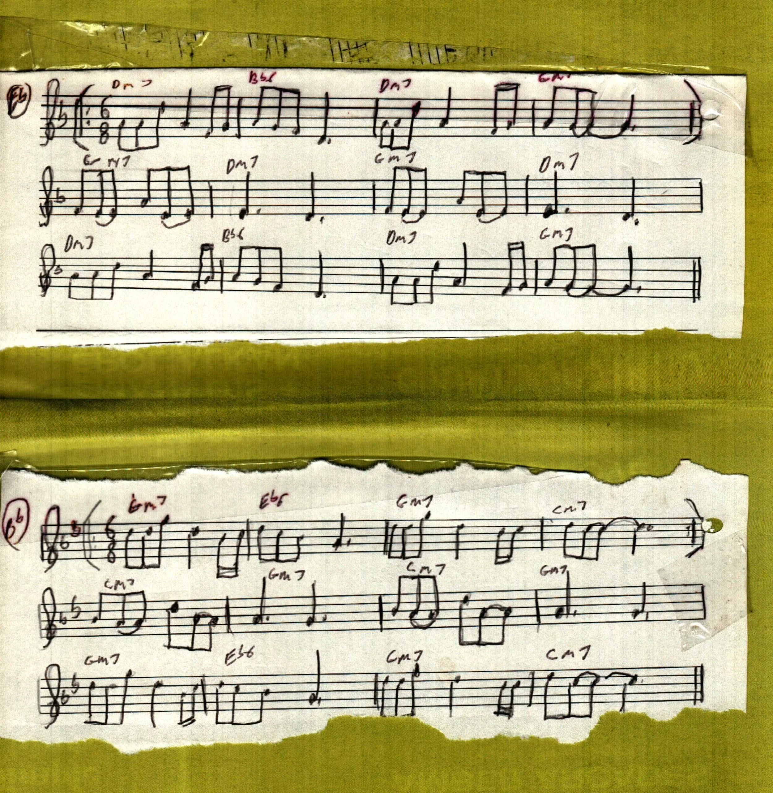 TCR/24/0018 MISC 28 Oct Written By Trash City Handwritten sheet music related to TCR/24/0013 (different instruments, other transpositions). Date: 2022? Fergus QuillFerg’s Imaginary Big BandFIBBsheet musicLeeds Trash City