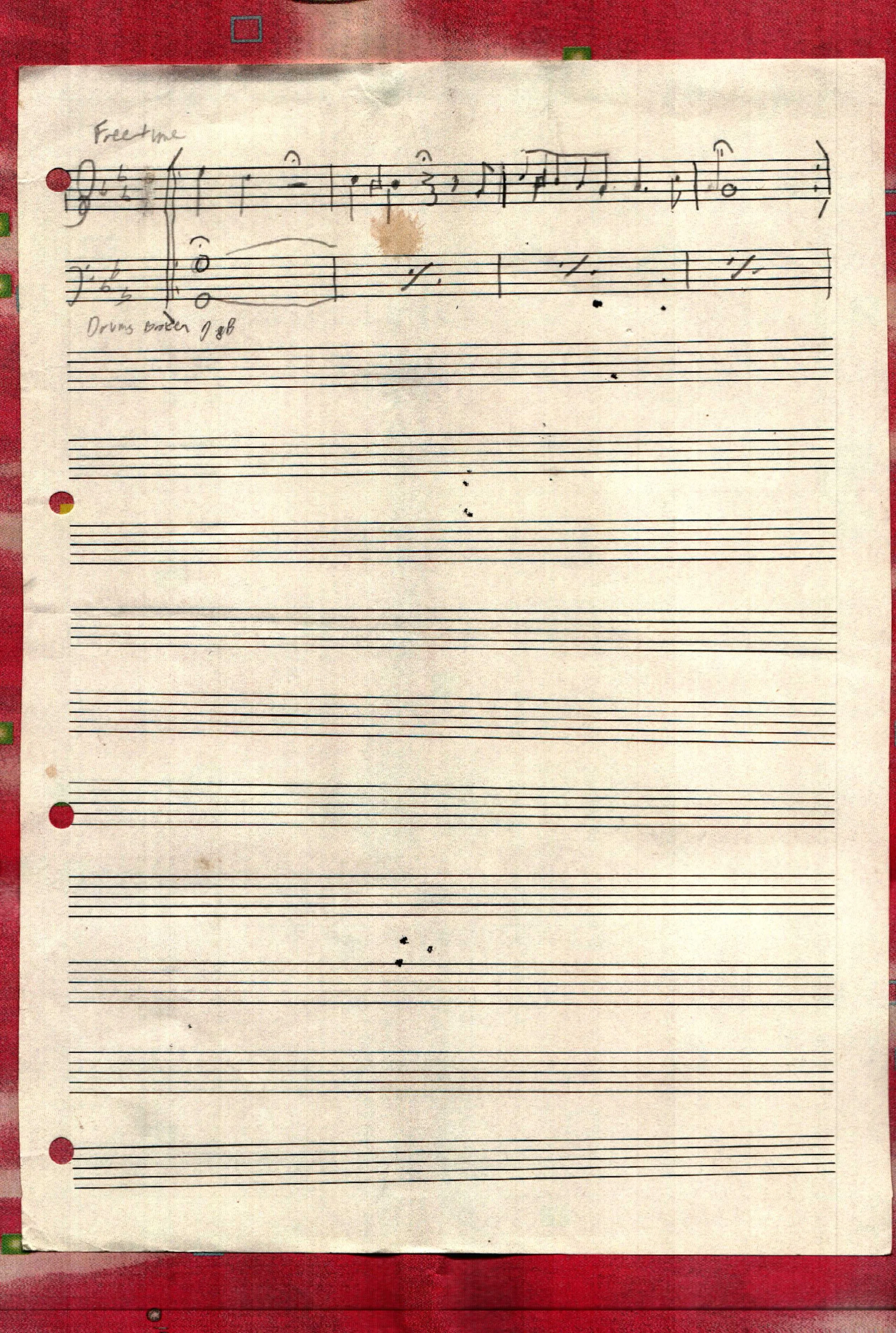 TCR/24/0019 MISC 28 Oct Written By Trash City Handwritten original sketch of tune that became ‘Find Out’. Little is changed on the final track. Date: n.d. Fergus QuillFerg’s Imaginary Big BandFIBBsheet musicLeeds Trash City