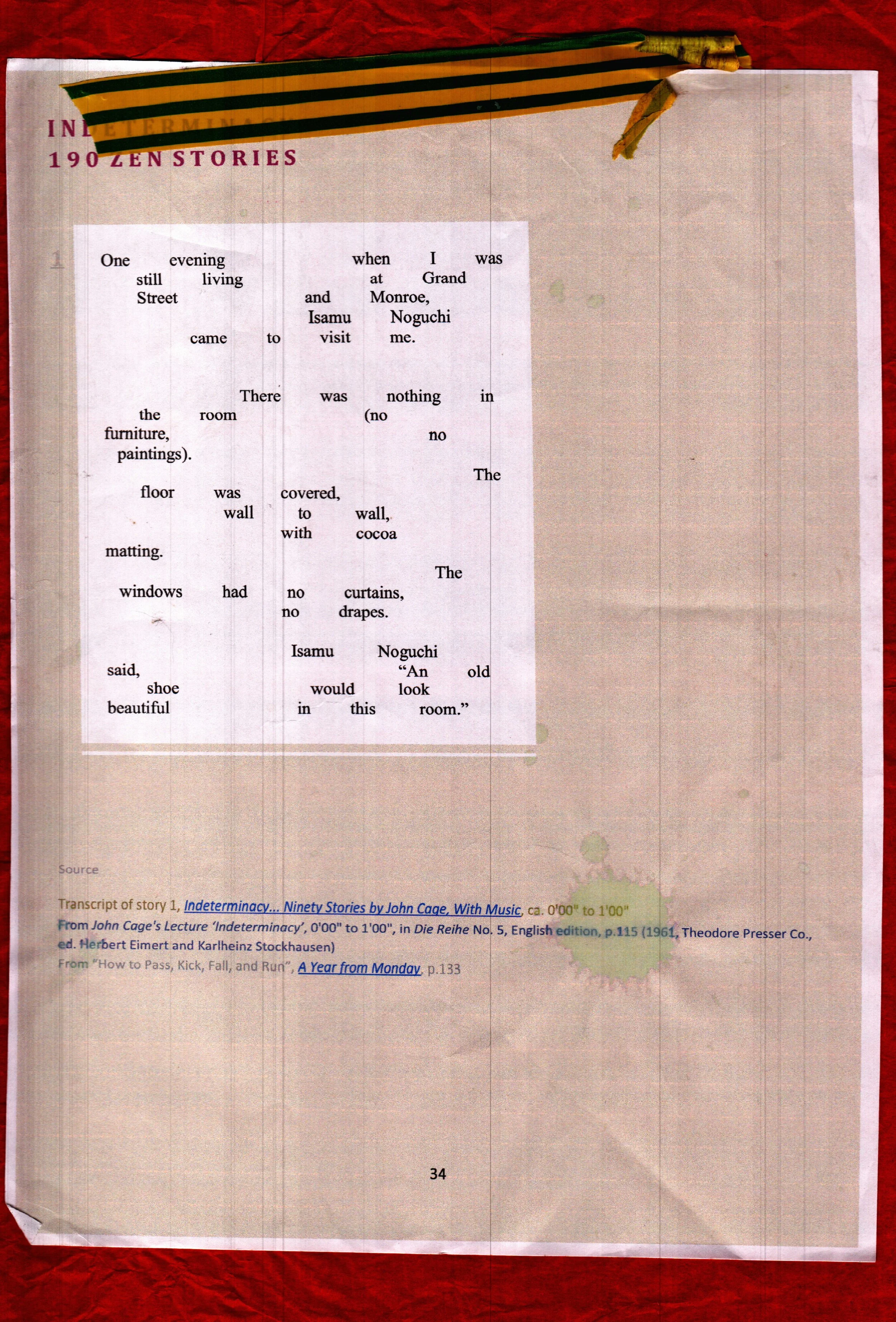 TCR/24/0028 MISC 24 Feb Written By Trash City First page of John Cage’s ‘Indeterminacy’. Performed multiple times. Date: n.d. Fergus Quilllyrics Trash City