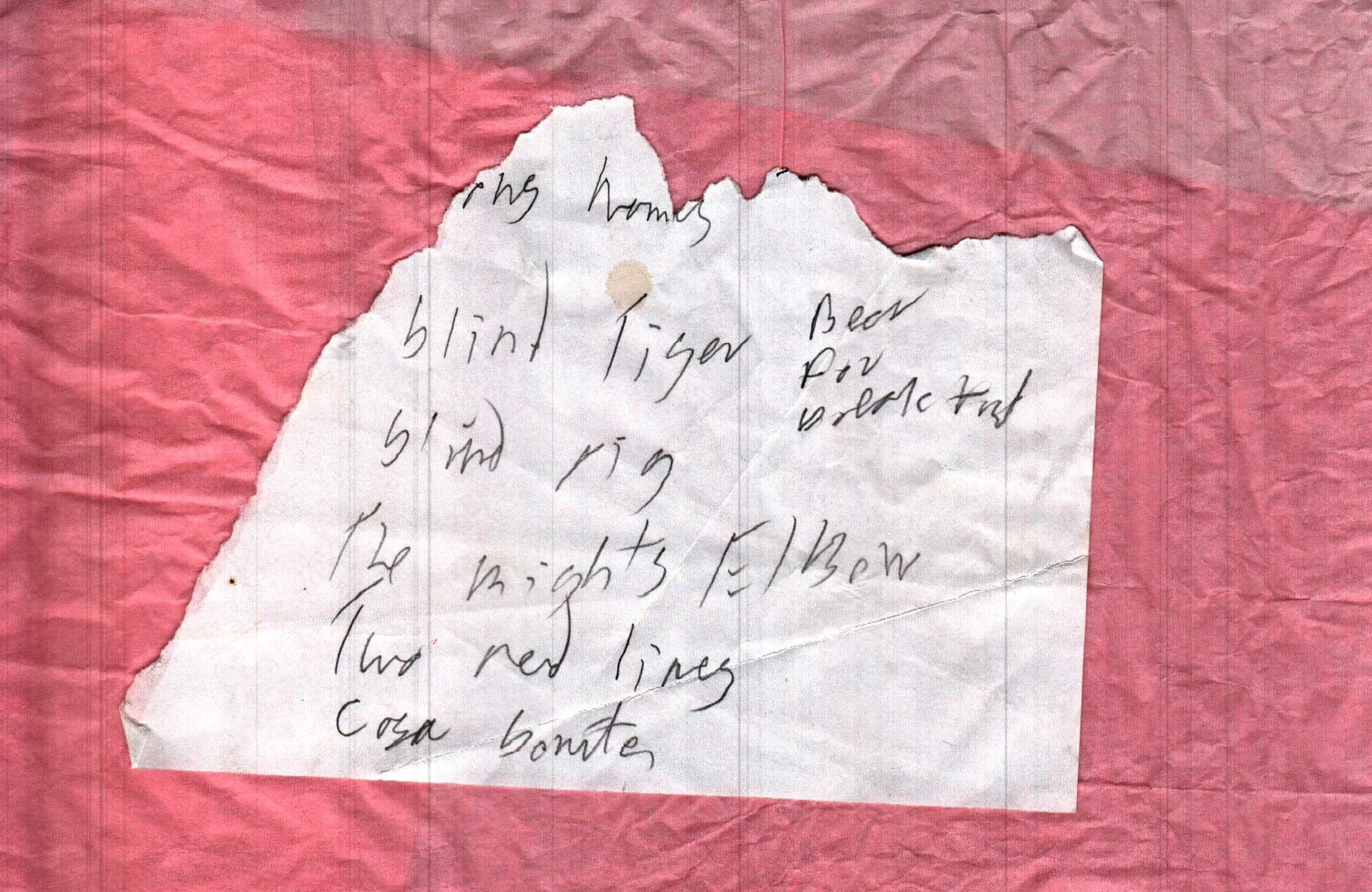 List of draft song titles. ‘Casa Bonita’ used for third Ferg’s Imaginary Big Band album. Some, like ‘Bear’ and ‘Blind Tiger’, given to others.